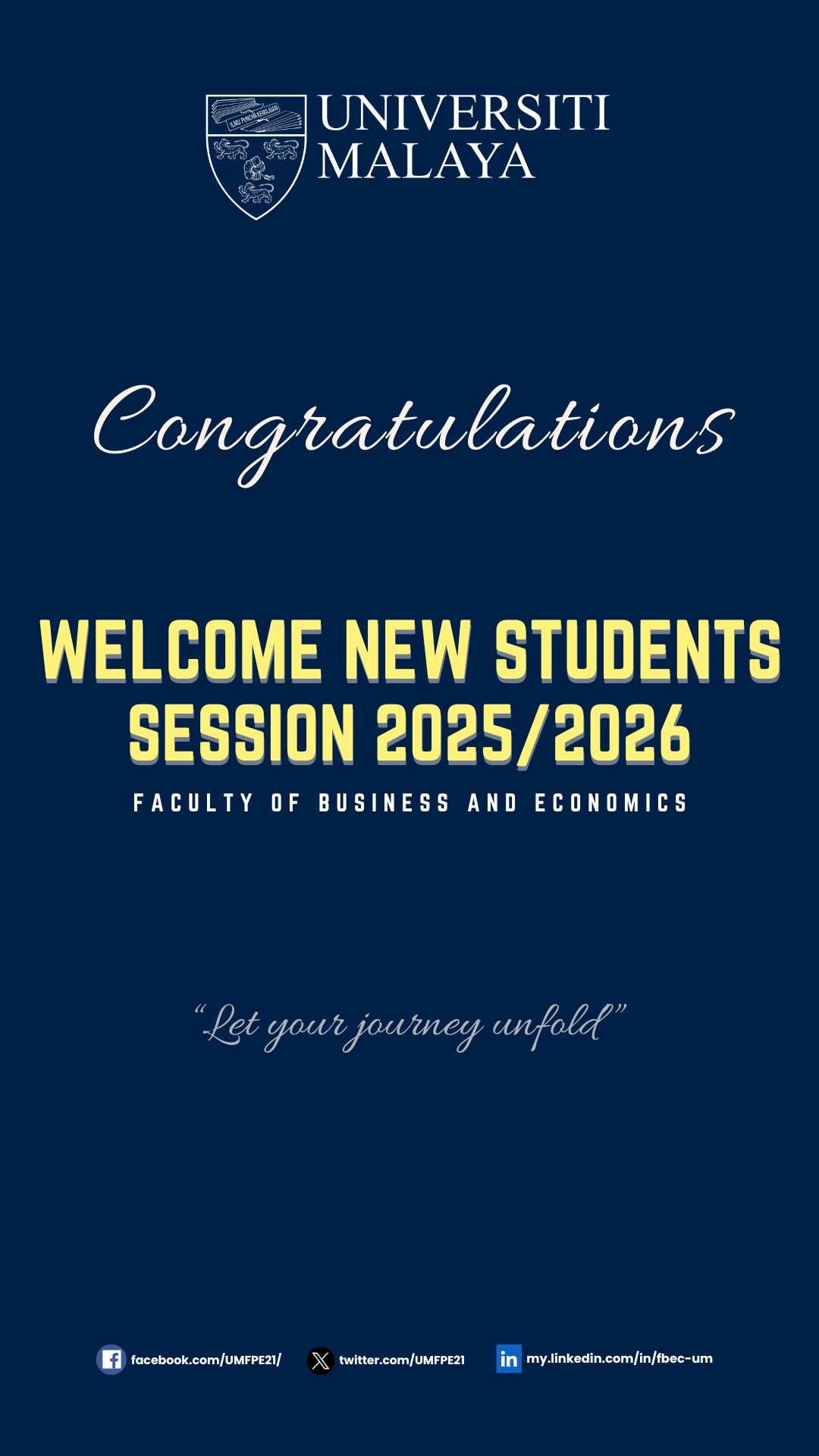 Faculty of Business and Economics (FBEc) warmly congratulates and welcomes all new students Session 2025/2026. We are delighted to have you join our vibrant and prestigious academic community.