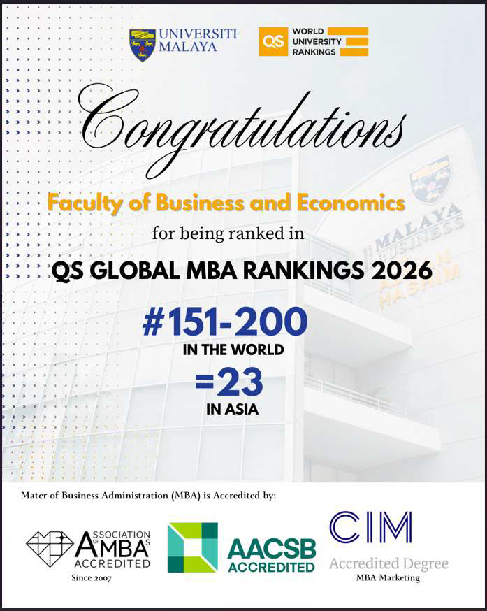 CONGRATULATIONS FACULTY OF BUSINESS AND ECONOMICS FOR BEING RANKED IN QS GLOBAL MBA RANKINGS 2026
